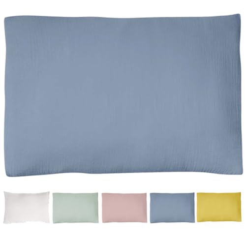 Le Lit de Mon Bébé Taie Oreiller 35 x 40 cm Double Gaze de Coton - Bleu Gris - Mousseline Toute Douce - pour Lit Berceau Couffin 53 x 80 60 x 120 70 x 140 cm - crépon de Coton, Lange, craftine