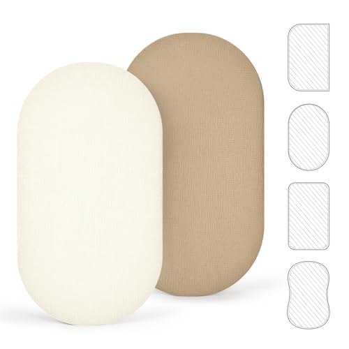 lulumoon Lot de 2 draps Housses en Mousseline de Coton, Drap Housse 90 x 40 cm de Matelas pour lit de bébé, lit de Berceau et lit de couffin (Sable crème)