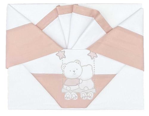 Andy & Helen - Parure de lit pour Maxi Berceau/côté lit/Next to me brodé + Dessous avec élastiques et taie d'oreiller, Rose.
