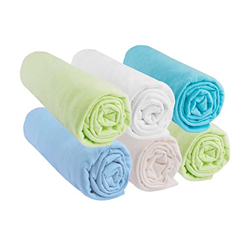 Easy Dort | Lot de 6 Draps Housse 60x120 cm Lit Bébé Berceau Lit Parapluie | 100% Coton Jersey | Extensible | Coloris Mixte | Sommeil sain | Certifié Oeko-Tex | Fabriqué en Europe