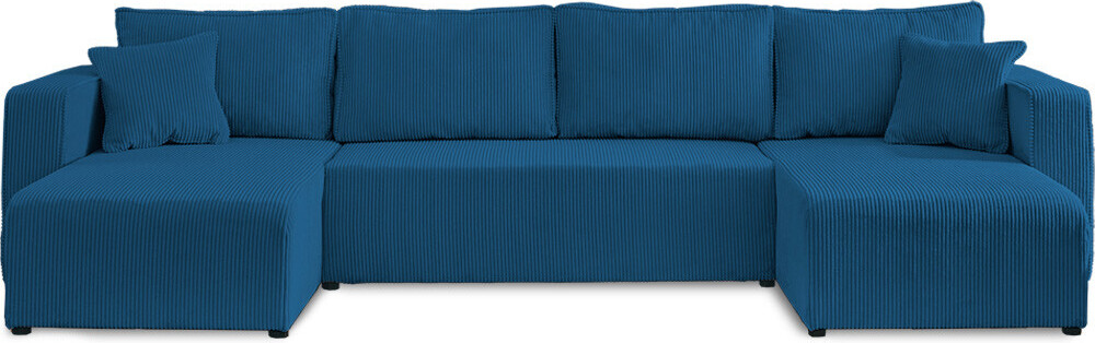 Best Mobilier Valos - canapé panoramique en U - 7 places - convertible avec coffres - en velours côtelé , Bleu Ardoise