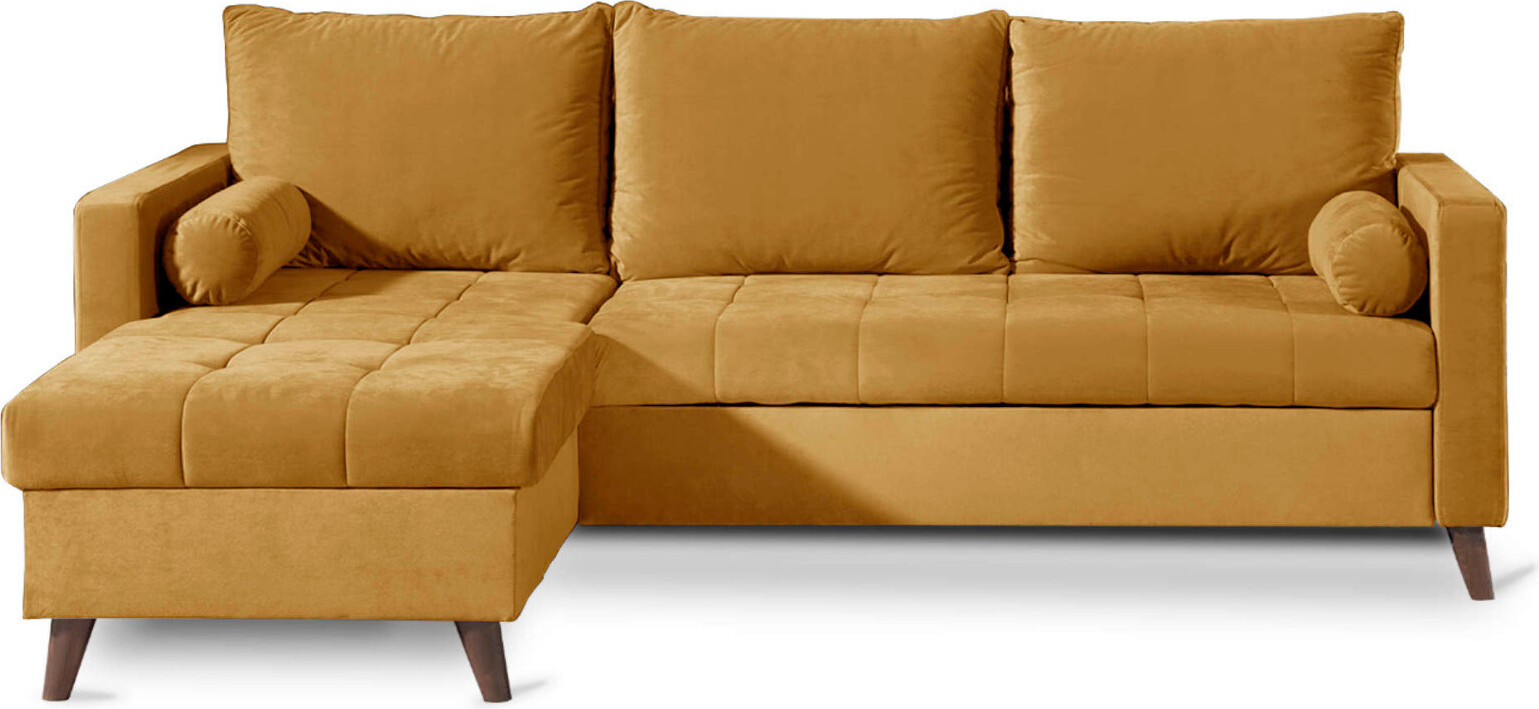 Best Mobilier POLAR - Canapé d'angle réversible convertible en velours au design scandinave 4 places Jaune