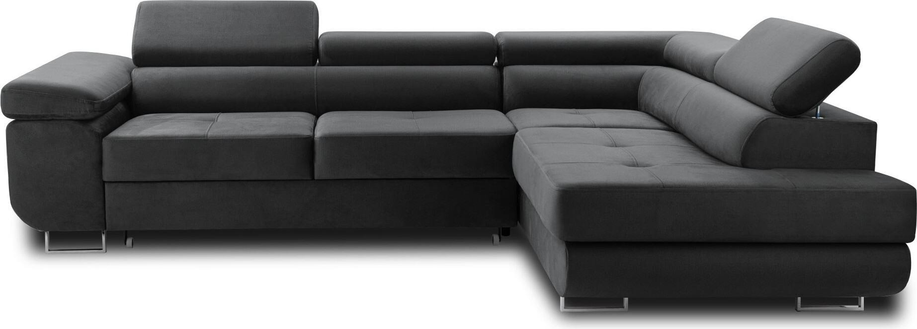Best Mobilier Pablo - canapé d'angle droit - 5 places - convertible avec coffre et têtières réglables - en velours , Gris foncé