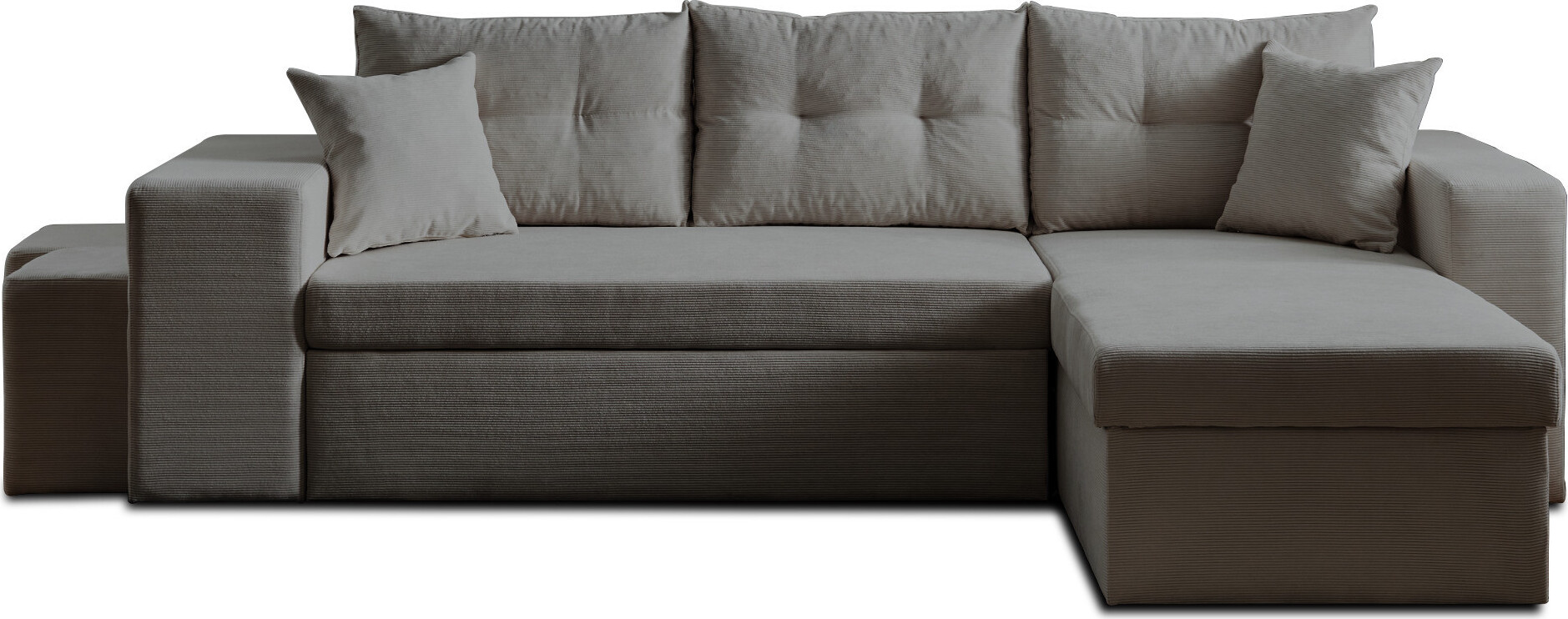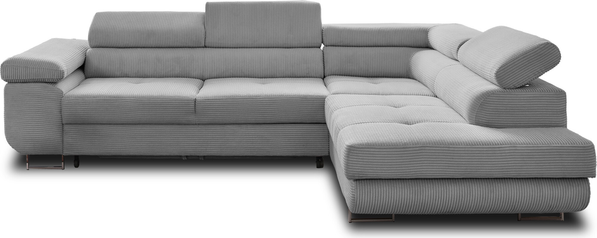 Best Mobilier Zaria - canapé d'angle droit - convertible avec coffre et têtières réglables - 5 places - en velours côtelé , Gris clair