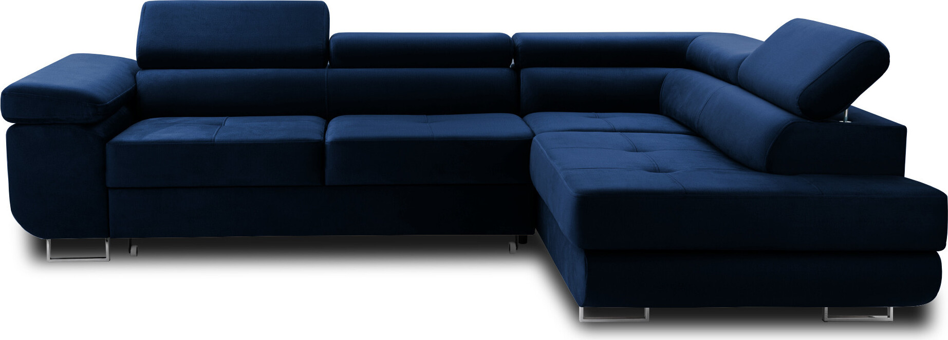 Best Mobilier Pablo - canapé d'angle droit - 5 places - convertible avec coffre et têtières réglables - en velours , Bleu nuit