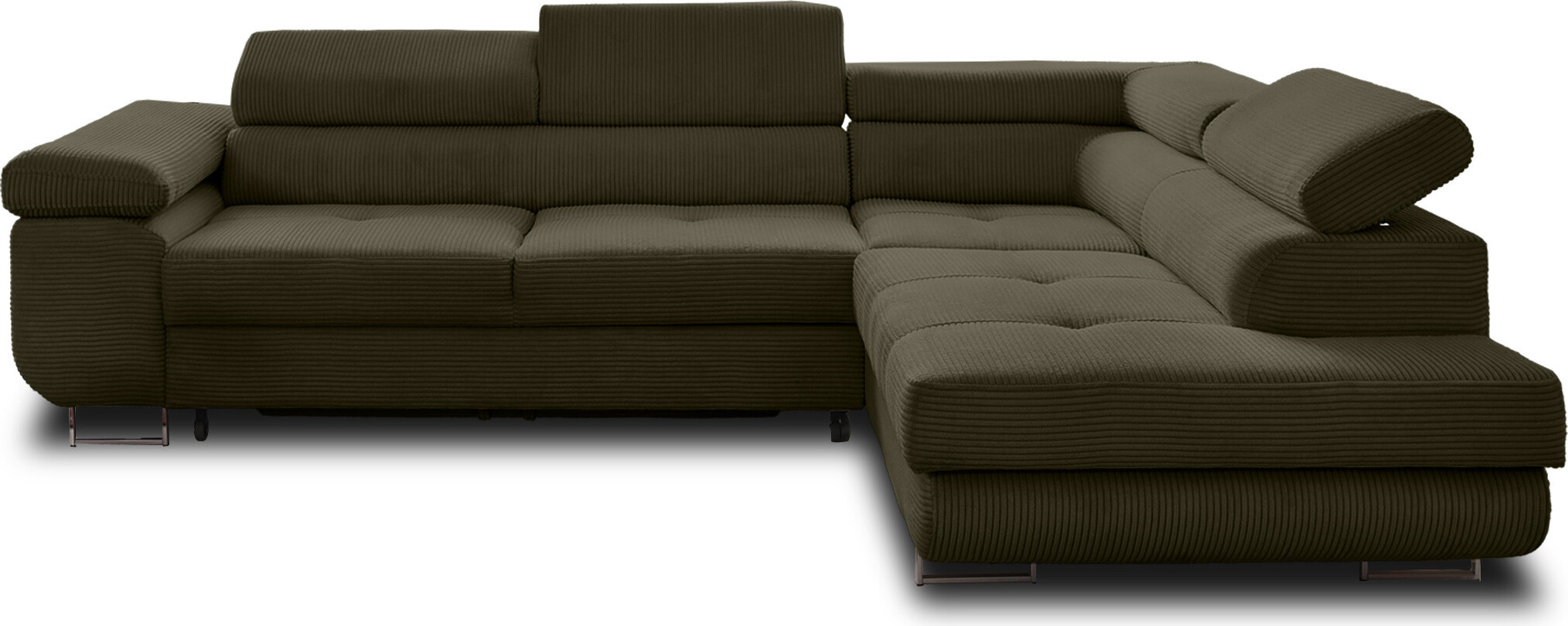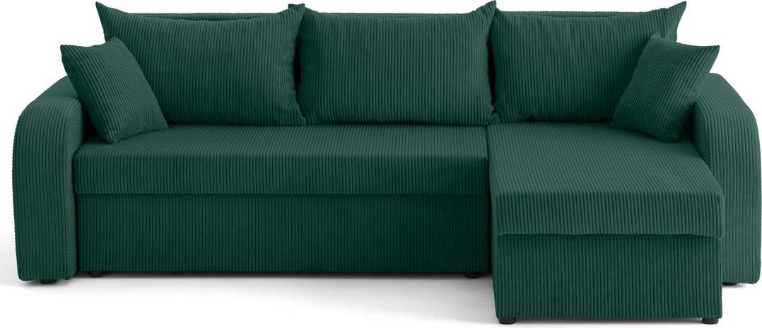 Best Mobilier Zaria - canapé d'angle droit - convertible avec coffre et têtières réglables - 5 places - en velours côtelé , Vert