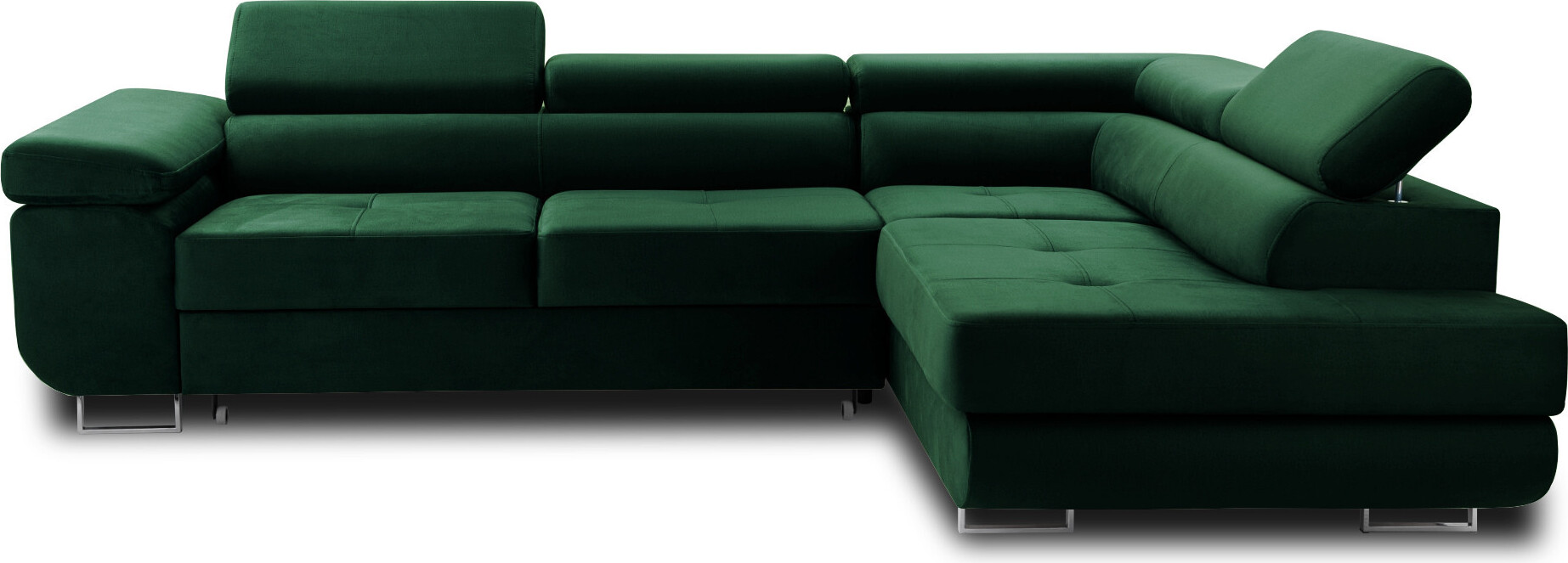 Best Mobilier Pablo - canapé d'angle droit - 5 places - convertible avec coffre et têtières réglables - en velours , Vert