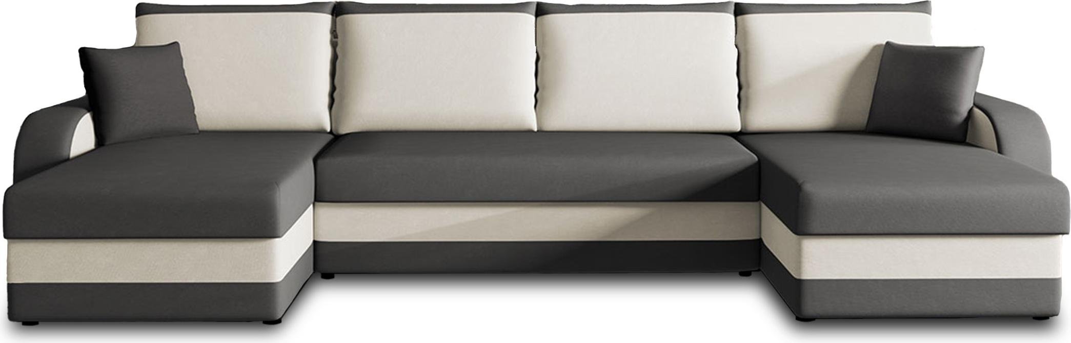 Best Mobilier Valos - canapé panoramique en U - 7 places - convertible avec coffre - en velours , Gris / Blanc