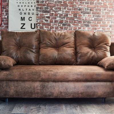 Best Mobilier Anaelle - Canapé droit 2 places convertible déplimousse Style industriel Marron