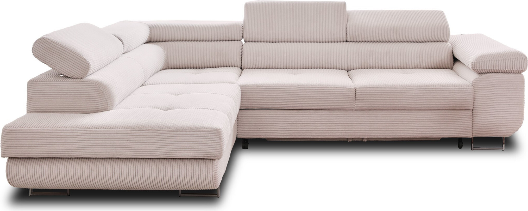 Best Mobilier Zaria - canapé d'angle gauche - convertible avec coffre et têtières réglables - 5 places - en velours côtelé , Beige
