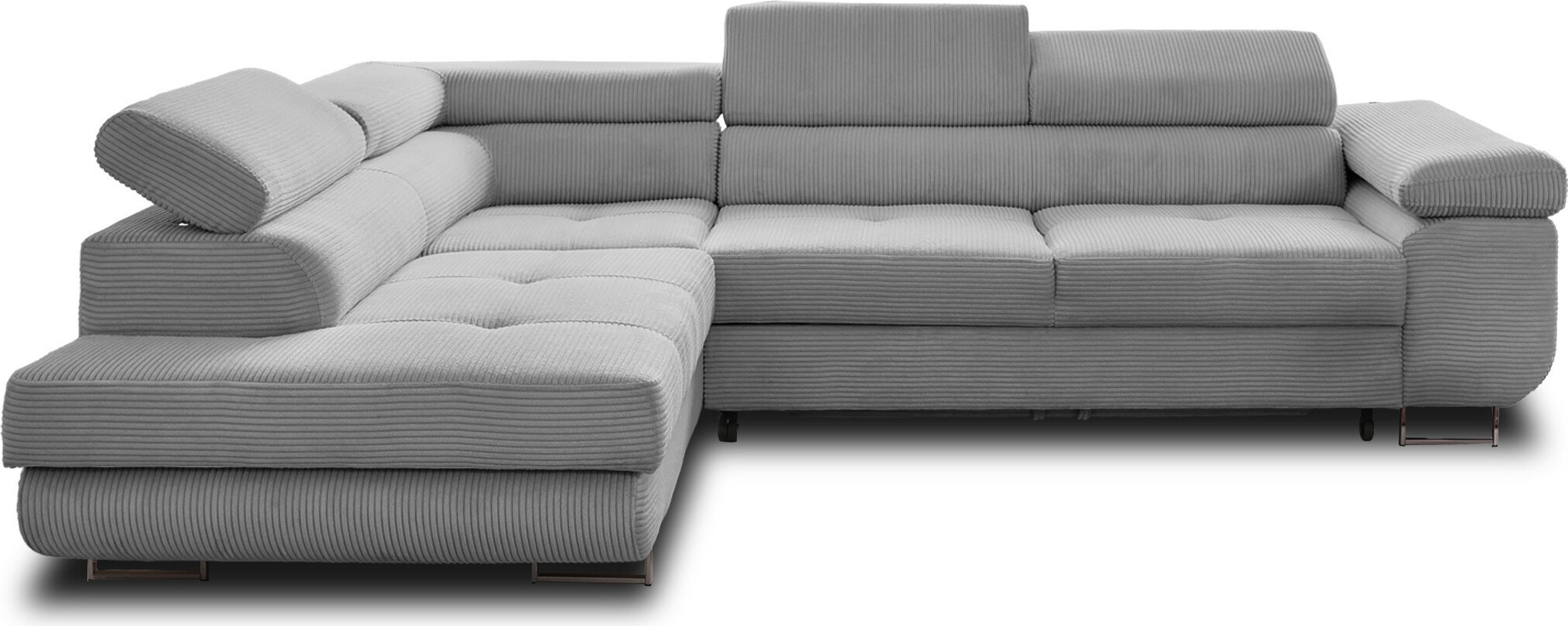Best Mobilier Zaria - canapé d'angle gauche - convertible avec coffre et têtières réglables - 5 places - en velours côtelé , Gris clair