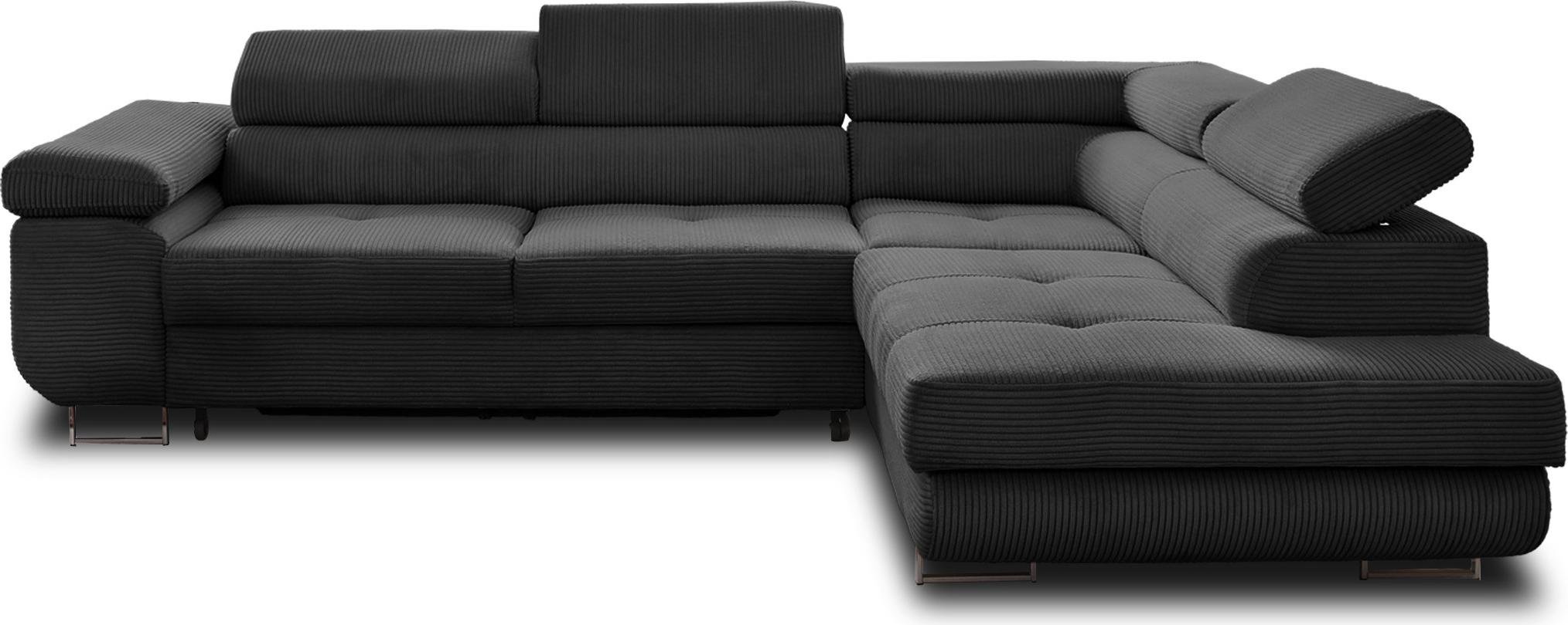 Best Mobilier Zaria - canapé d'angle droit - convertible avec coffre et têtières réglables - 5 places - en velours côtelé , Gris foncé