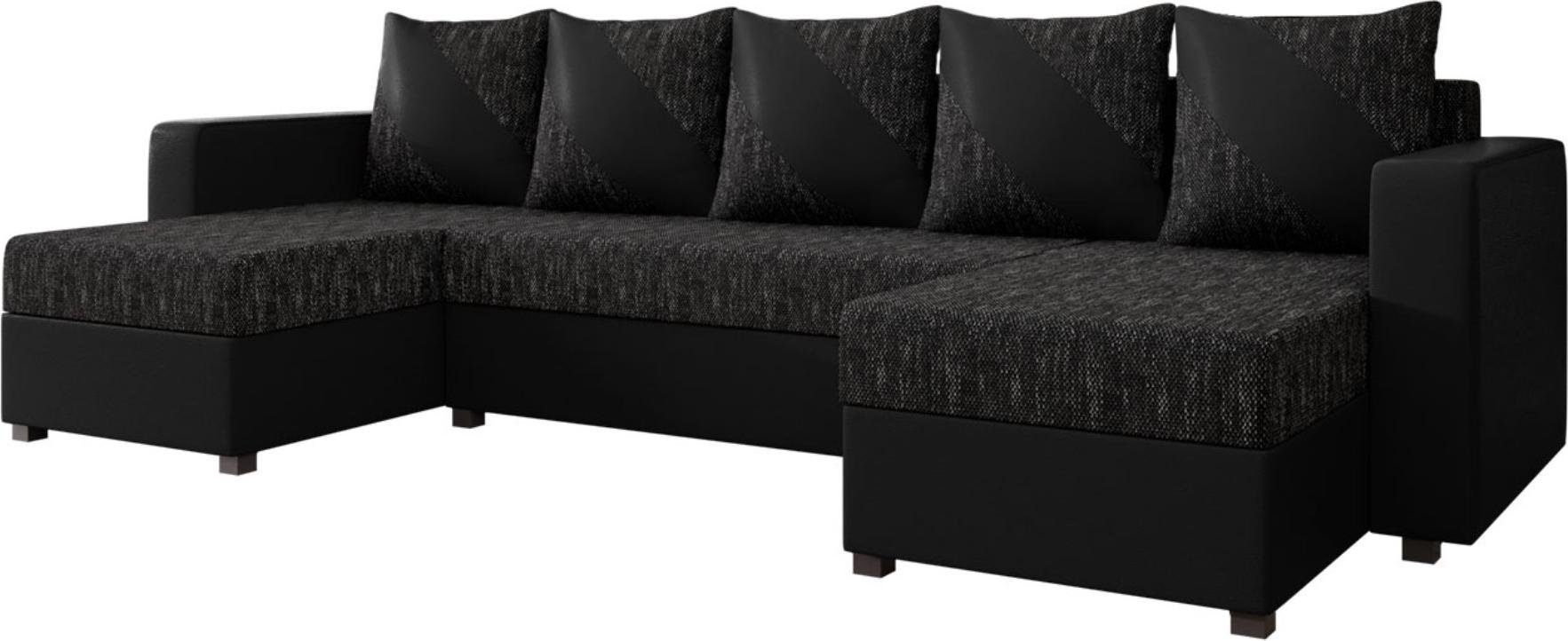Best Mobilier Romy - canapé panoramique en U - 7 places - convertible avec coffre - en tissu etPolyuréthane, Noir / Gris