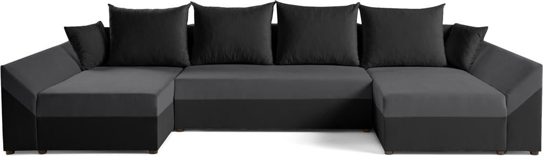 Best Mobilier Mike - canapé panoramique en U - 7 places - convertible - avec coffre - en velours , Noir / Gris