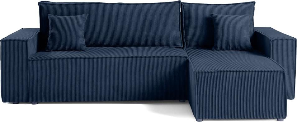 Best Mobilier Cezanne - canapé d'angle réversible - 4 places - convertible avec coffre - en velours côtelé , Bleu Ardoise