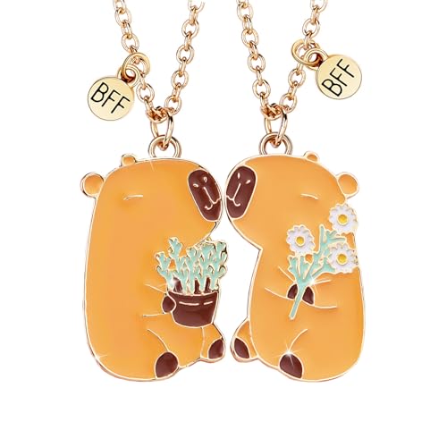 2 BFF Collier d'Amitié Capybara Pendentif, Mignons Animal Meilleurs Amis Colliers pour 2, Best Friends Forever Dorée Colliers Magnétiques, Valentin Amitié Bijoux Cadeaux pour Filles Amis Sœurs Mère