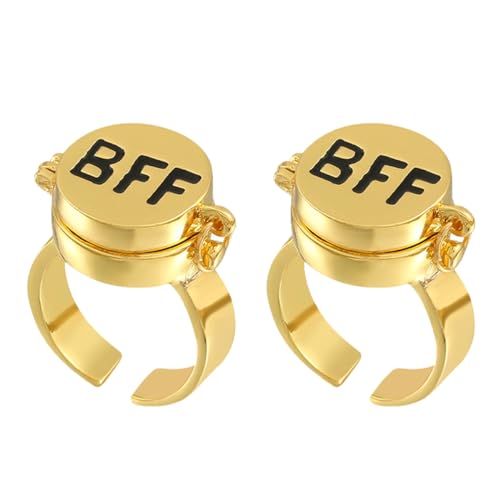 LEEQ 2 pcs Best Friends Forever Ring - 14K Or Anime Aesthetic BFF Anneaux Joli Couple Open Cap Anneaux Bijoux Cadeaux pour Femmes Filles Unisexe, pour Le Meilleur ami