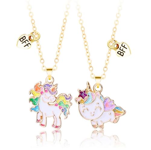 BFF Collier d'Amitié avec Pendentif Licorne Dessin Animé, Mignons Meilleurs Amis Colliers, Forever Best Friends Colliers pour 2 Filles, Bijoux Cadeaux Saint Valentin pour Enfants Mère Sœurs Amis
