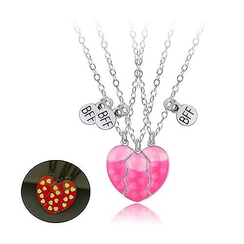Pwsap 3 Filles BFF Collier d'Amitié, Meilleurs Amis Colliers Lumineux, Coeur Pendentif Chaîne Collier, Best Friends Forever Colliers, Valentin Amitié Bijoux Cadeaux pour Filles Amis Sœurs Mère, Rose