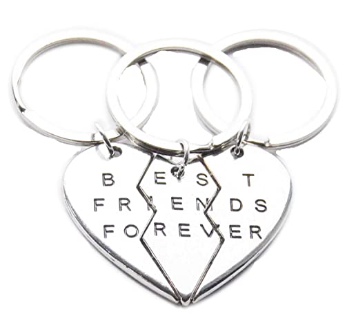 honggui 111 - 3 porte-clés BFF - 3 porte-clés d'amitié - 3 porte-clés Best Friends Forever - Porte-clés puzzle en forme de cœur Argent Vieilli., 43x34mm