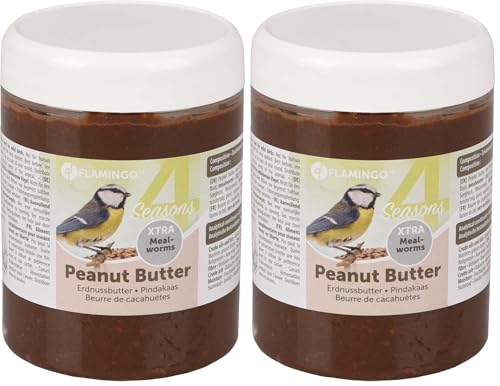 FLAMINGO mangeoire pour Oiseaux – Pot de Beurre de cacahuète avec vers de Farine – 330g (Lot de 2)