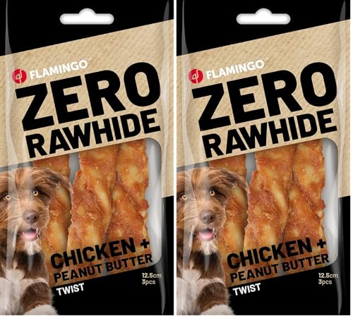 Flamingo Friandise Chien – Bâtonnet sans Peau Bovine au Poulet & Beurre de cacahuète – 12,5cm – 120g – saveur Unique (Lot de 2)