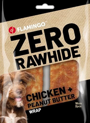 Flamingo Friandise Chien – Wrap sans Peau Bovine au Poulet & Beurre de cacahuète – 10cm – 120g – Combinaison gourmande