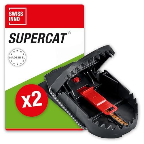 SWISSINNO Piège à Rats SuperCat - Piège à Ressort réutilisable et fiable avec appât au Beurre de cacahuète - Prêt à l'emploi - Utilisation intérieure et extérieure - 1 Piège + 2 Recharges d'Appât