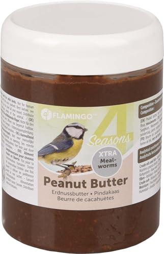 Flamingo mangeoire pour Oiseaux – Pot de Beurre de cacahuète avec vers de Farine – 330g