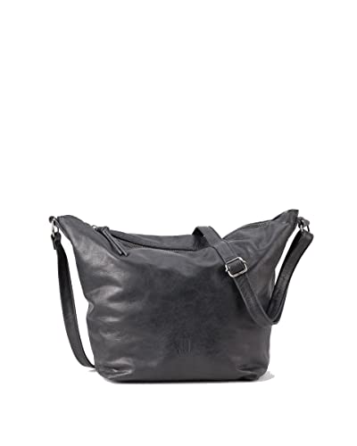 BIBA Sac à Main pour Femme de Cuir Véritable, Boho Sac Leather Jersey X JEX5L, Manche Courte et Sangle Longue, Fermeture Zippée, Cuir de Bovin Légitime, Couleur Noir