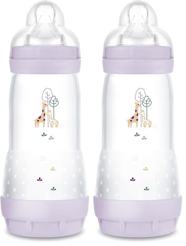 MAM Biberon Easy Start/Anti-Colique - 320ml - Lilas - Tétine Débit 3 (Lot de 2)