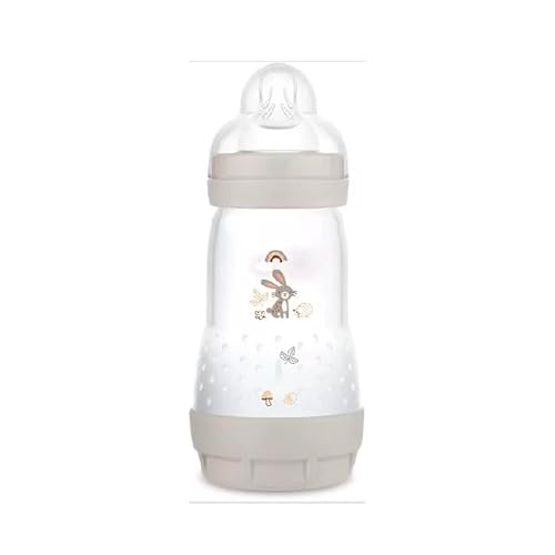 MAM Biberon anti-coliques, 2-4 mois, 260 ml, avec tétine 2 flux moyen en silicone, facile d'acceptation, auto-stérilisable et facile à nettoyer, Easy Start Anti-Colic, neutre mat, lot de 1