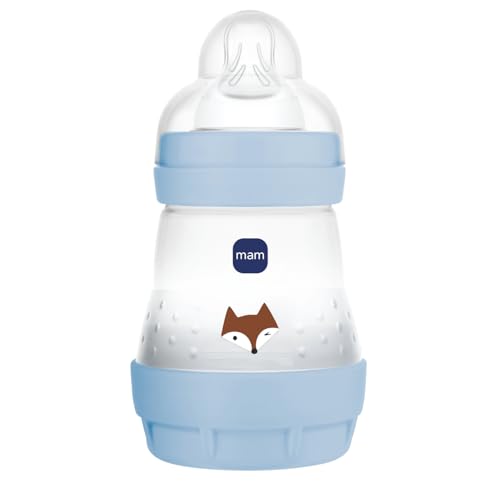 MAM - Easy Start A117 - Biberon anti-colique breveté avec tétine 1 en silicone SkinsofTM ultra doux, pour bébés à partir de 0 mois, 160 ml, bleu, auto-stérilisable en 3 minutes