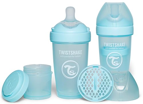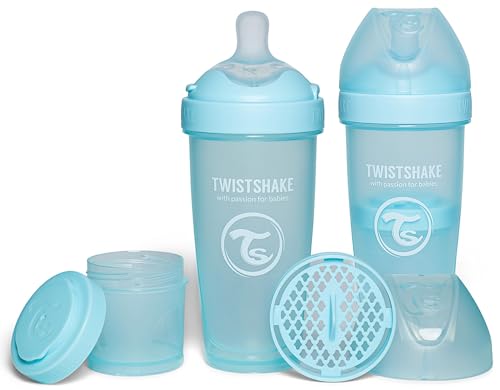 Twistshake Biberon Anti-Colique 330 ml avec Récipient à Lait en Poudre et Mélangeur – Tétine en Silicone Débit Rapide – Sans BPA – Idéal pour Bébé dès 4 Mois – Bleu