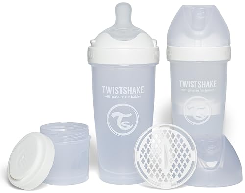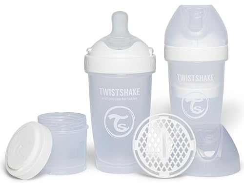 Twistshake Biberon Anti-Colique 330 ml avec Récipient à Lait en Poudre et Mélangeur – Tétine en Silicone Débit Rapide – Sans BPA – Idéal pour Bébé dès 4 Mois – Blanc
