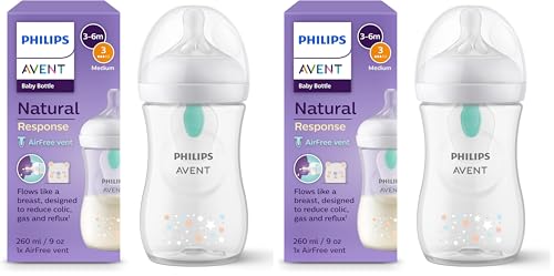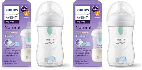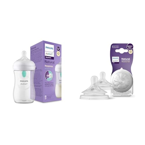 Philips Avent Biberon à Réponse Naturelle de 260 ml avec valve AirFree & Avent Lot de 2 tétines pour biberon à Réponse Naturelle 0% BPA, Débit 4 pour Bébé de 3 mois + (modèle SCY964/02)
