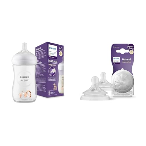 Philips Avent Biberon à Réponse Naturelle de 260 ml, sans BPA & Avent Lot de 2 tétines pour biberon à Réponse Naturelle 0% BPA, Débit 4 pour Bébé de 3 mois + (modèle SCY964/02)