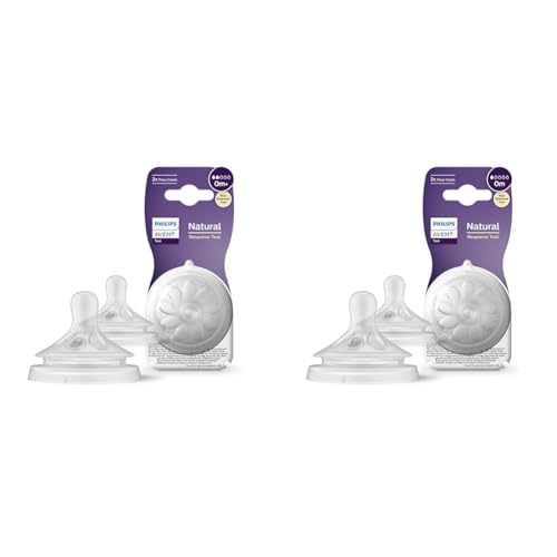 Philips Avent Lot de 2 tétines pour biberon à Réponse Naturelle 0% BPA & Avent Lot de 2 tétines pour biberon à Réponse Naturelle 0% BPA, Débit 2 pour Bébé de 0 mois + (modèle SCY962/02)