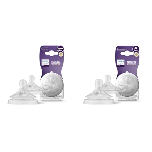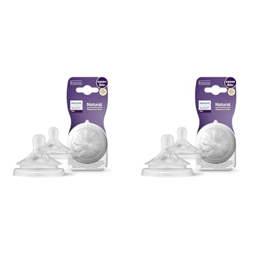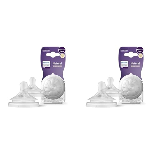 Philips Avent Lot de 2 tétines pour biberon à Réponse Naturelle 0% BPA, Débit 4 & Avent Lot de 2 tétines pour biberon à Réponse Naturelle 0% BPA, Débit 3 pour Bébé de 1 mois + (modèle SCY963/02)