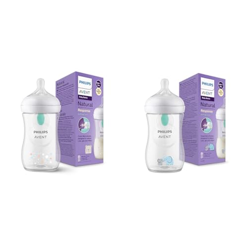Philips Avent Biberon à Réponse Naturelle de 260 ml avec valve AirFree & Avent Biberon à Réponse Naturelle de 260 ml avec valve AirFree, sans BPA pour les bébés de 1 mois et +, motif éléphant