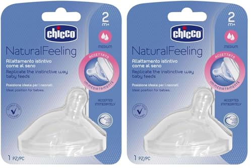 Chicco Tétine Silicone Natural Feeling Flux Moyen Bout Incliné x 1 2 Mois+ (Lot de 2)