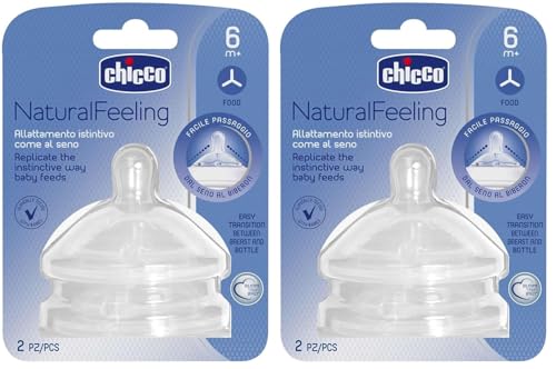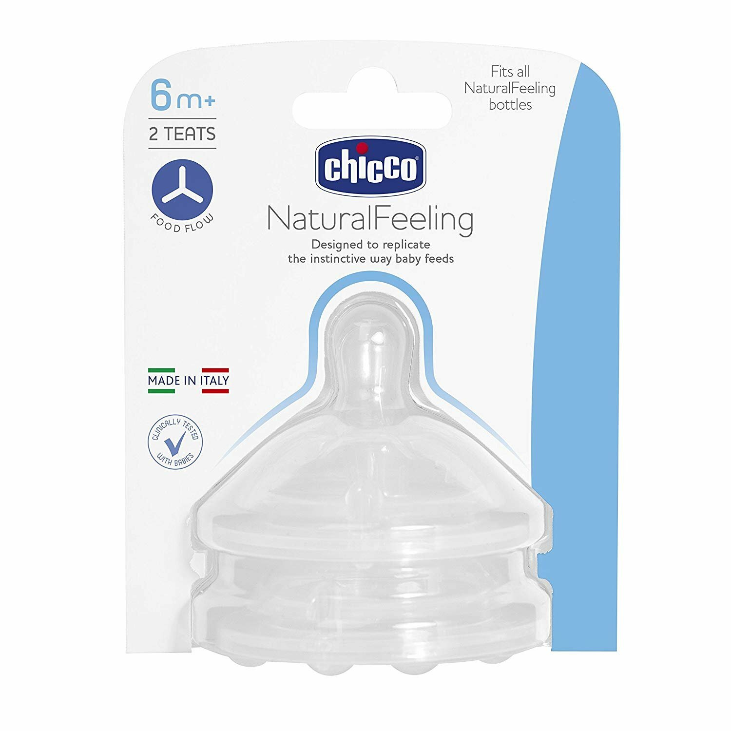 Chicco Tétine Silicone Natural Feeling Flux Repas Bout Allongé 6 Mois+ lot de 2