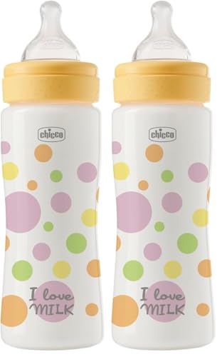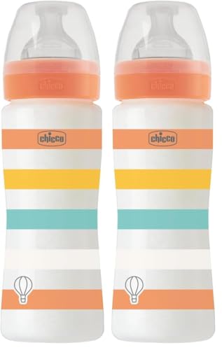 Chicco Set de 2 biberons Fast Flow 330 ml, avec tétine Physio en silicone souple et finition Soft Sense, anti-colique, réduit les régurgitations et l'irritabilité, biberon en plastique, 4 mois+ bébé