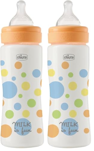 Chicco Set de 2 Biberons Perfect Easy Fast Flow, biberon anti-colique, réduit les régurgitations et l'irritabilité, biberon en plastique de 330 ml, coffret cadeau, paquet économique, 4 mois et plus