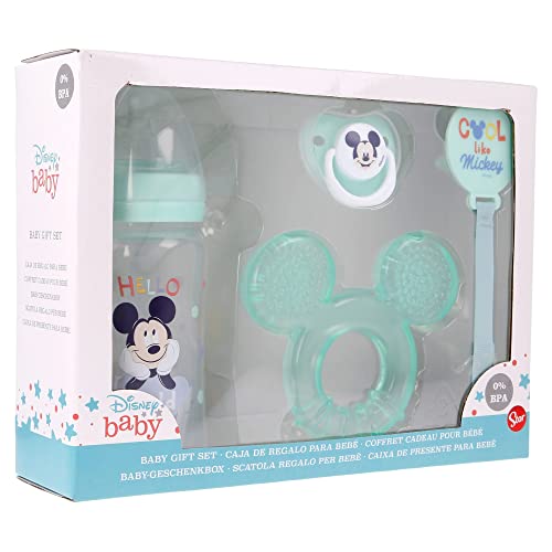 Stor Ensemble de 4 pièces Disney Mickey Mouse pour enfants, sans BPA, avec biberon, tétine, porte-tétine et appareil de massage des dents, lavable et réutilisable