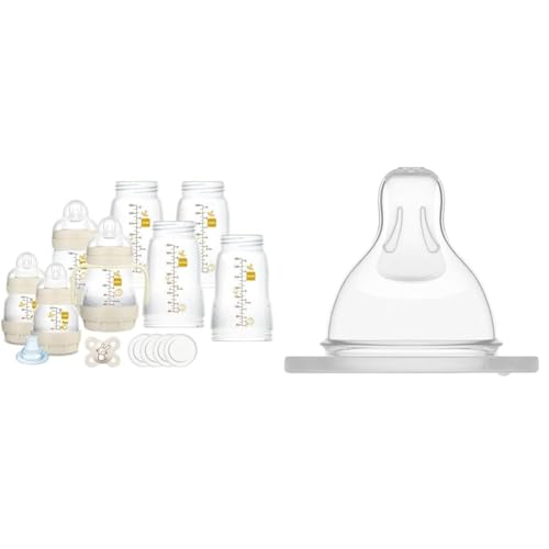 Mam Biberon Easy Start Anti-Colic, 8 Biberons en formats de 130 ml, 160 ml et 260 ml, 1 sucette Start Nanò, 4 tampons scellants, 1 bec, beige & Lot de 2 Tétines Anatomiques en Silicone 0+ mois