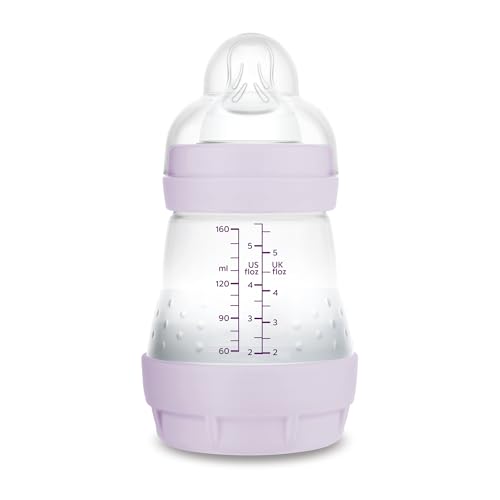MAM Biberon anti-coliques, nouveau-né, 0-2 mois, 160 ml, avec tétine 1 flux lent en silicone, facile à accepter, auto-stérilisable Easy Start Anti-Colic, Violette, lot de 1 unité