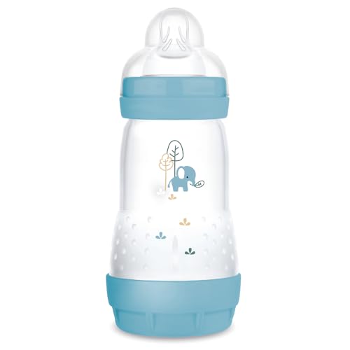 MAM Biberon, 2-4 mois, 270 ml, avec tétine 2 à débit moyen en silicone, facile à tenir, facile à nettoyer, MAM Easy Active, bleu brillant, lot de 1