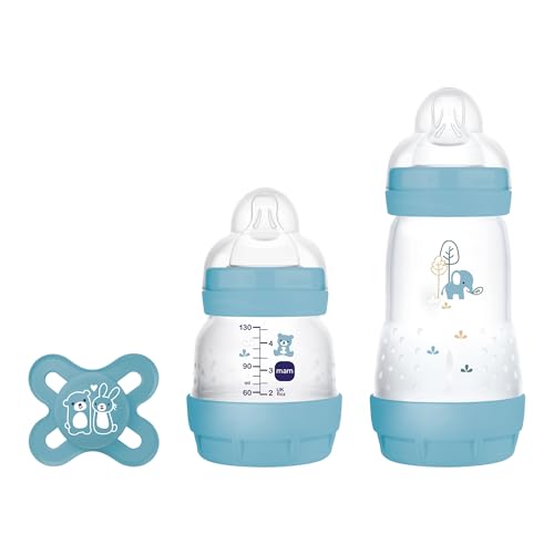 MAM, Set nouveau-né, set cadeau. Comprend : 1 biberon anti-colique de 130 ml, 1 biberon anti-colique de 260 ml, 1 tétine originale Start, à partir de 0 mois, bleu
