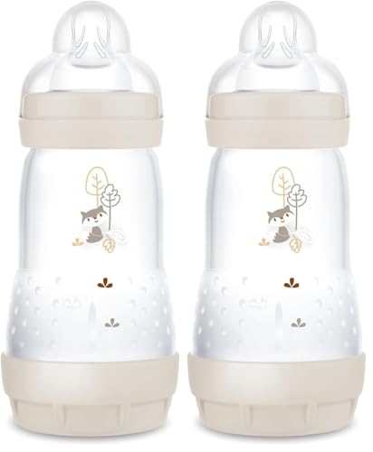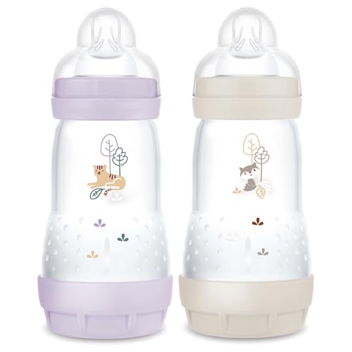 MAM Biberon anti-coliques, 2-4 mois, 260 ml, avec tétine 2 flux moyen en silicone, facile d'acceptation, auto-stérilisable et facile à nettoyer, Easy Start Anti-Colic, neutre mat, lot de 2